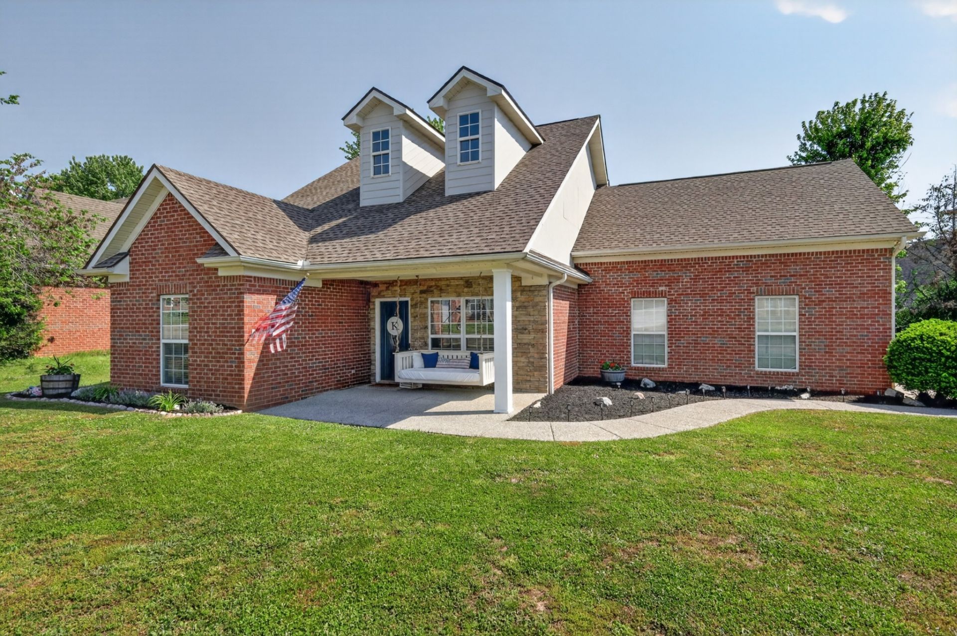 Charming all-brick home in Hampton Springs Subdivision, situated on one of the largest lots in the neighborhood! This 3 bedroom, 2 bathroom home offers a functional main-level layout with an additional flex/bonus space-perfect for a home office, craft room, or playroom. Recent updates include brand new flooring, plus newer roof and HVAC, giving peace of mind and added value. Enjoy outdoor living with a fenced backyard, covered front porch and rear patio, and a full irrigation system-ideal for entertaining or relaxing at home. Inside, cozy up by the fireplace in the inviting living area. Located in the desirable Spring Hill community with convenient access to shopping, dining, and commuting routes, this move-in ready home combines space, updates, and curb appeal.